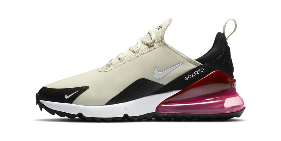 Continuing to add to its golf footwear lineup, Nike has now delivered its emerging Air Max 270 G model in a familiar “Light Bone/Black/Hot Punch/White” colorway.