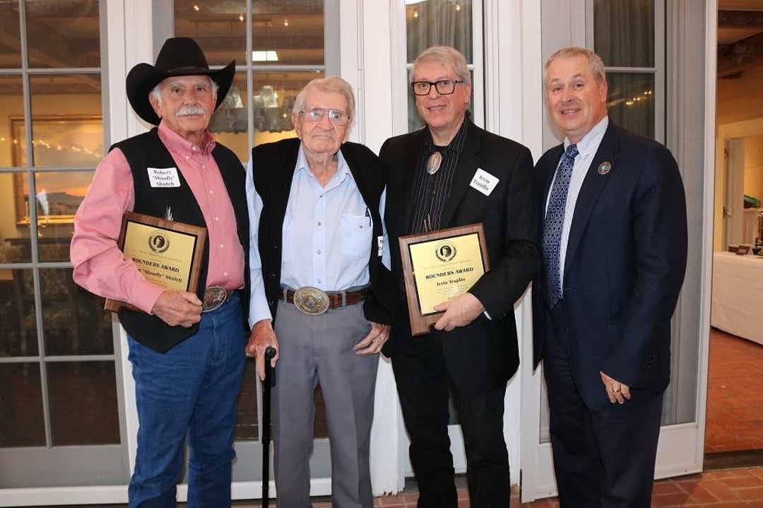The Rounders Award is named after “The Rounders,” a classic western novel written by Evans. Created in 1990 by former New Mexico Agriculture Secretary Frank DuBois, the purpose of the award is to honor those who live, promote and articulate the Western way of life. A ceremony has typically been held each fall in Santa Fe, at which the New Mexico Secretary of Agriculture and Evans present the awards. All past recipients are invited, and many stories are shared. A total of 27 individuals have received this honor, including Evans as the inaugural award recipient.